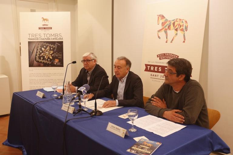L'alcalde de Sant Joan Despí, Antoni Poveda, el cap de la Colla de Geganters de Sant Joan Despí, Santi Riba i un representat de la Federació de Colles dels Tres Tombs de Catalunya, Victor Ibáñez, han presentat aquest matí al Centre Jujol-Can Negre les activitats d'aquesta festa que convertirà Sant Joan Despí en la Capital Catalana dels Tres Tombs. A la trobada hi participaran 55 colles de Tres Tombs d'arreu de Catalunya que portaran a la ciutat más de 100 carros i 400 cavalls en què participaran unes 700 traginers, carreters, etc.