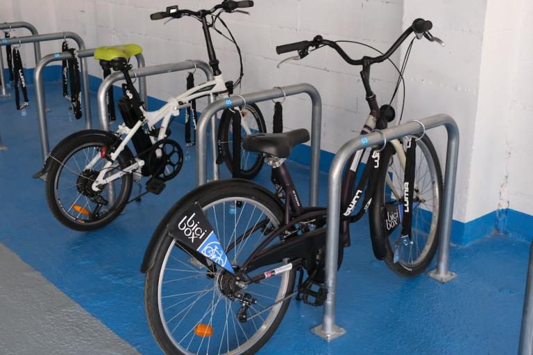 La instal·lació té una zona dedicada a l'aparcament de bicicletes de persones usuàries del servei Bicibox. Aquesta zona està marcada al terra amb color blau, compta amb 42 places i es regeix segons el Reglament del Bicibox.