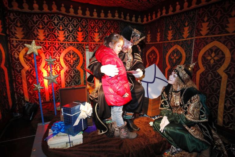 - Los pajes reales esperan en el toldo mágico las cartas de los niños y niñas para los Reyes