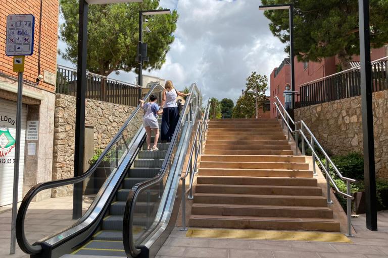 El Ayuntamiento de Sant Joan Despí ha instalado esta escalera mecánica en la calle Baltasar d'Espanya con el paseo del Canal con el objetivo de favorecer la movilidad y mejorar la accesibilidad en este entorno y en el acceso a la estación de Rodalies. La nueva infraestructura permite salvar un desnivel de casi tres metros.
